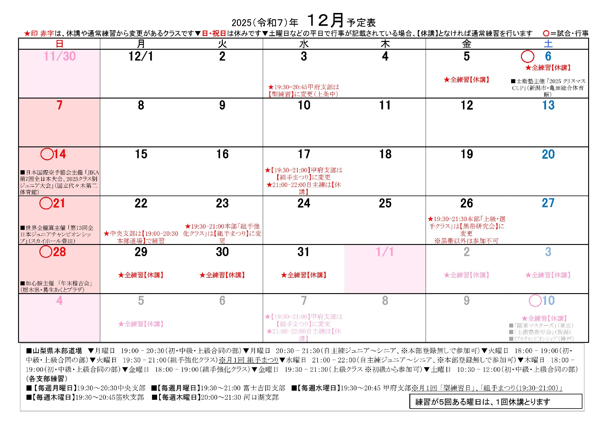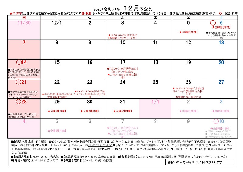 ▼ 12月3日 (水) 19:30-20:45 【型練習】 (甲府上条中)※本部登録者以外でも参加可