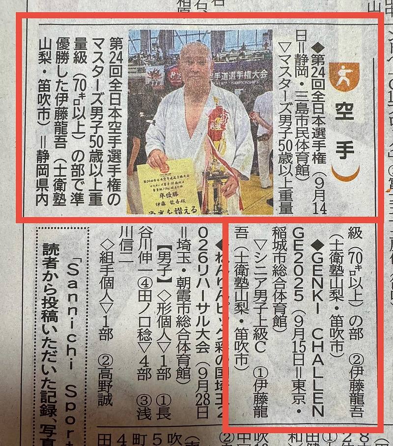11月28日(金)の山日新聞に、大会の結果が掲載されました。