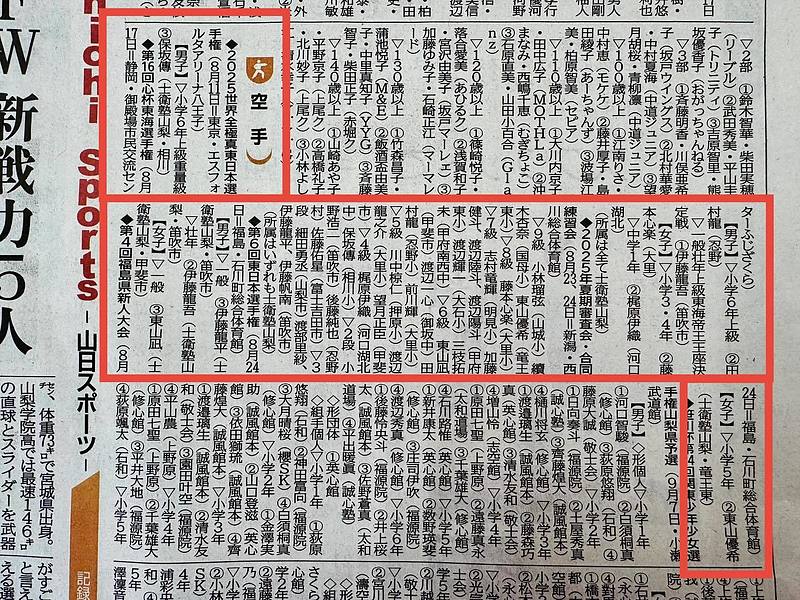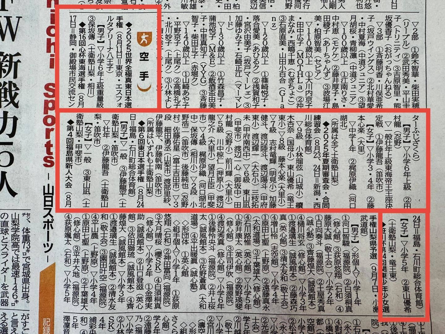 本日 12月2日(火)の山日新聞に、この間の大会の結果が掲載されました。