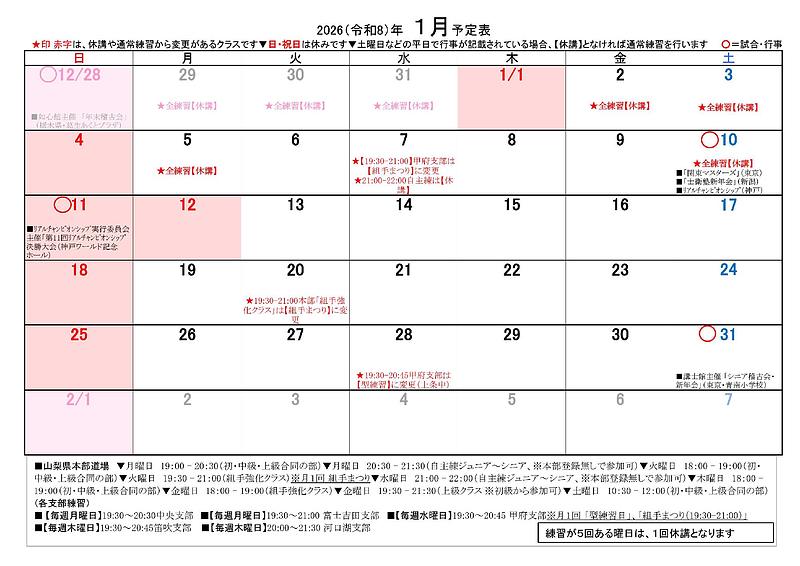 ◆◆◆ 士衛塾山梨の全道場の練習日程 ◆◆◆