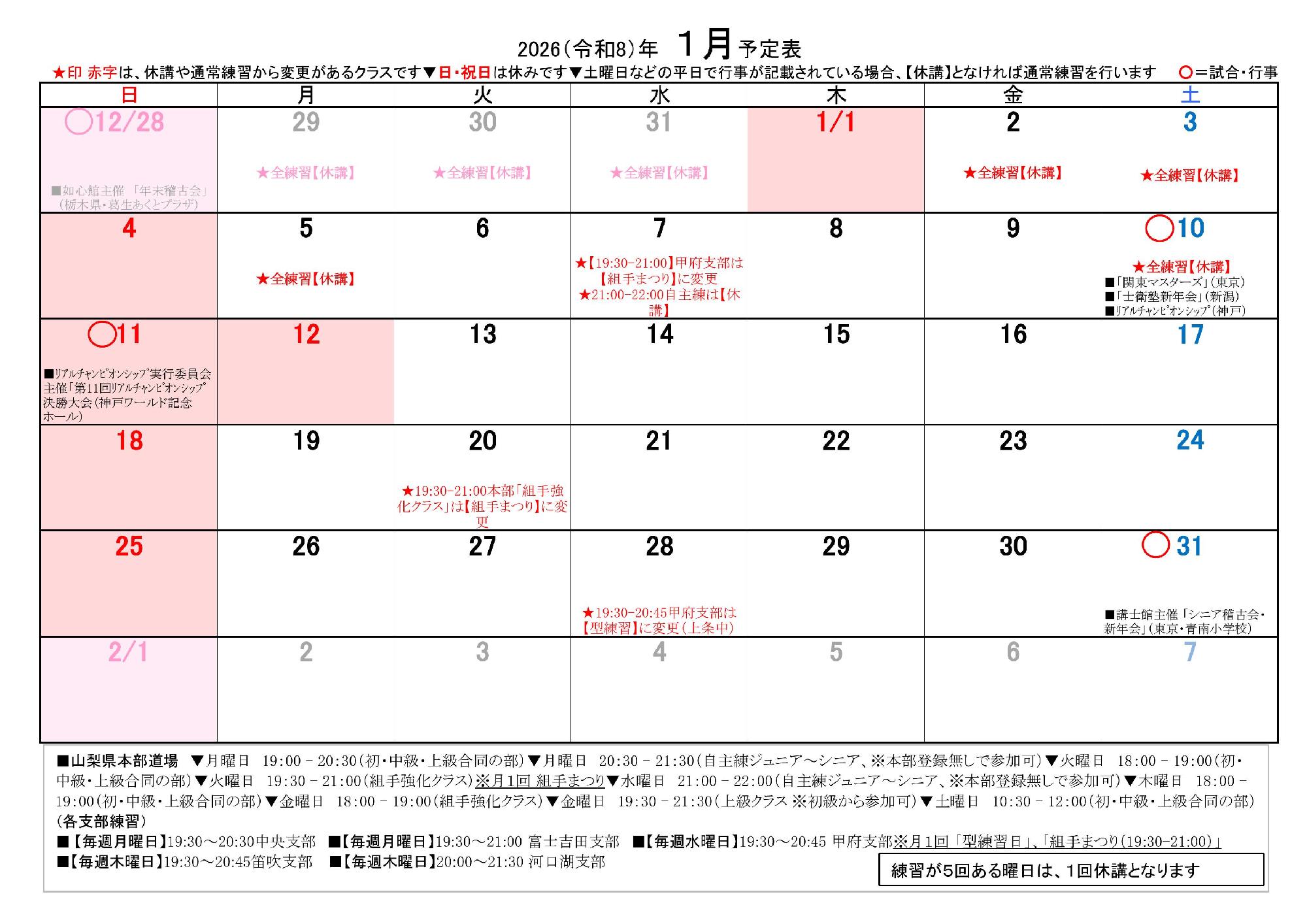 ▼ 1月28日 (水) 19:30-20:45 【型練習】 (甲府上条中)※本部登録者以外でも参加可