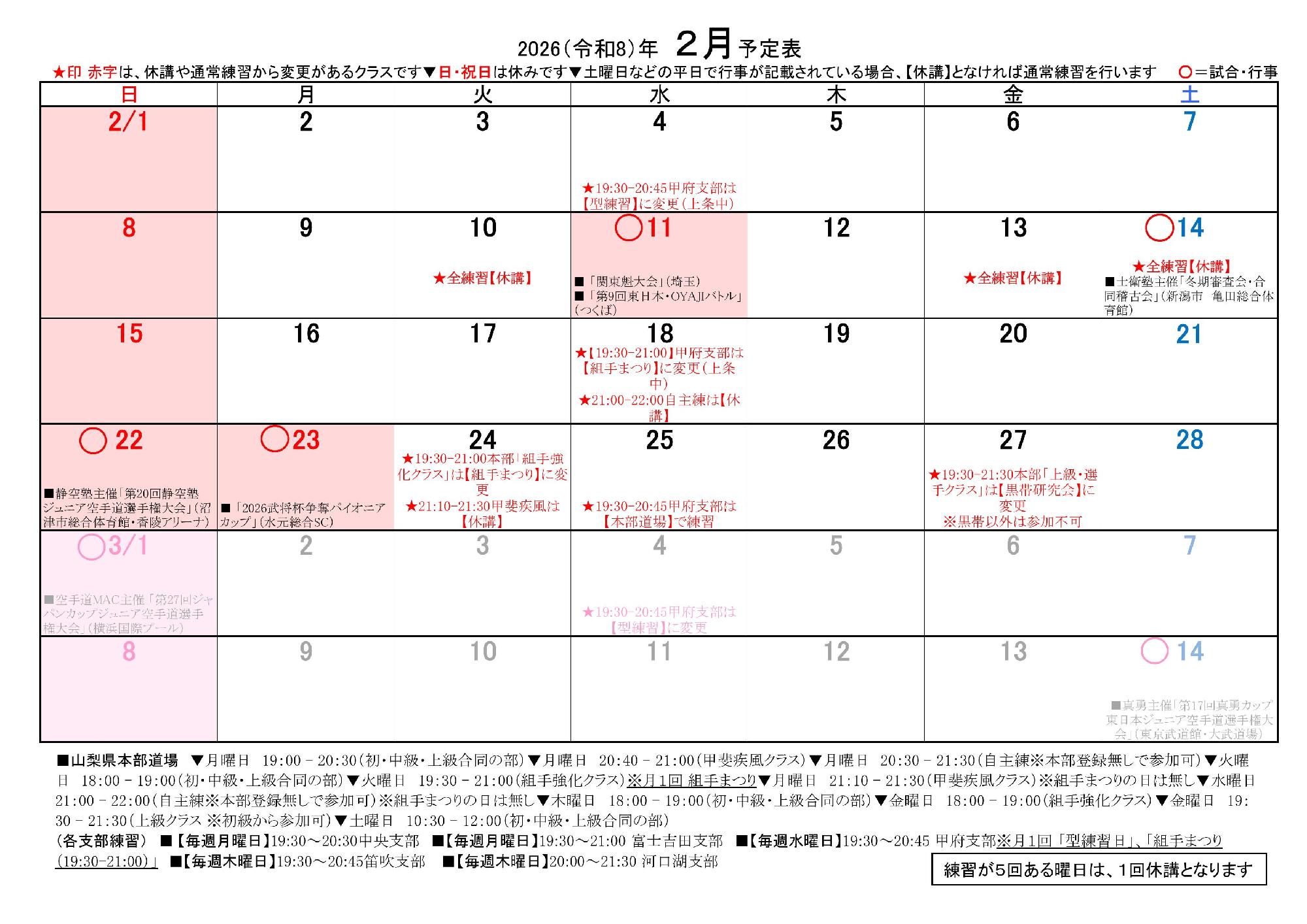 ▼ 2月4日 (水) 19:30-20:45 【型練習】(甲府上条中)※本部登録者以外でも参加可