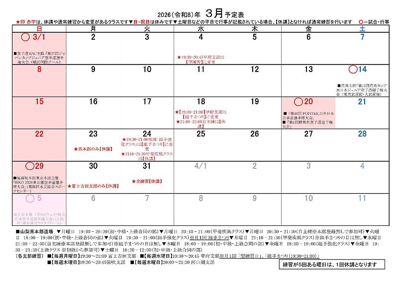 ▼ 3月4日 (水) 19:30-20:45 【型練習】(甲府上条中)※本部登録者以外でも参加可