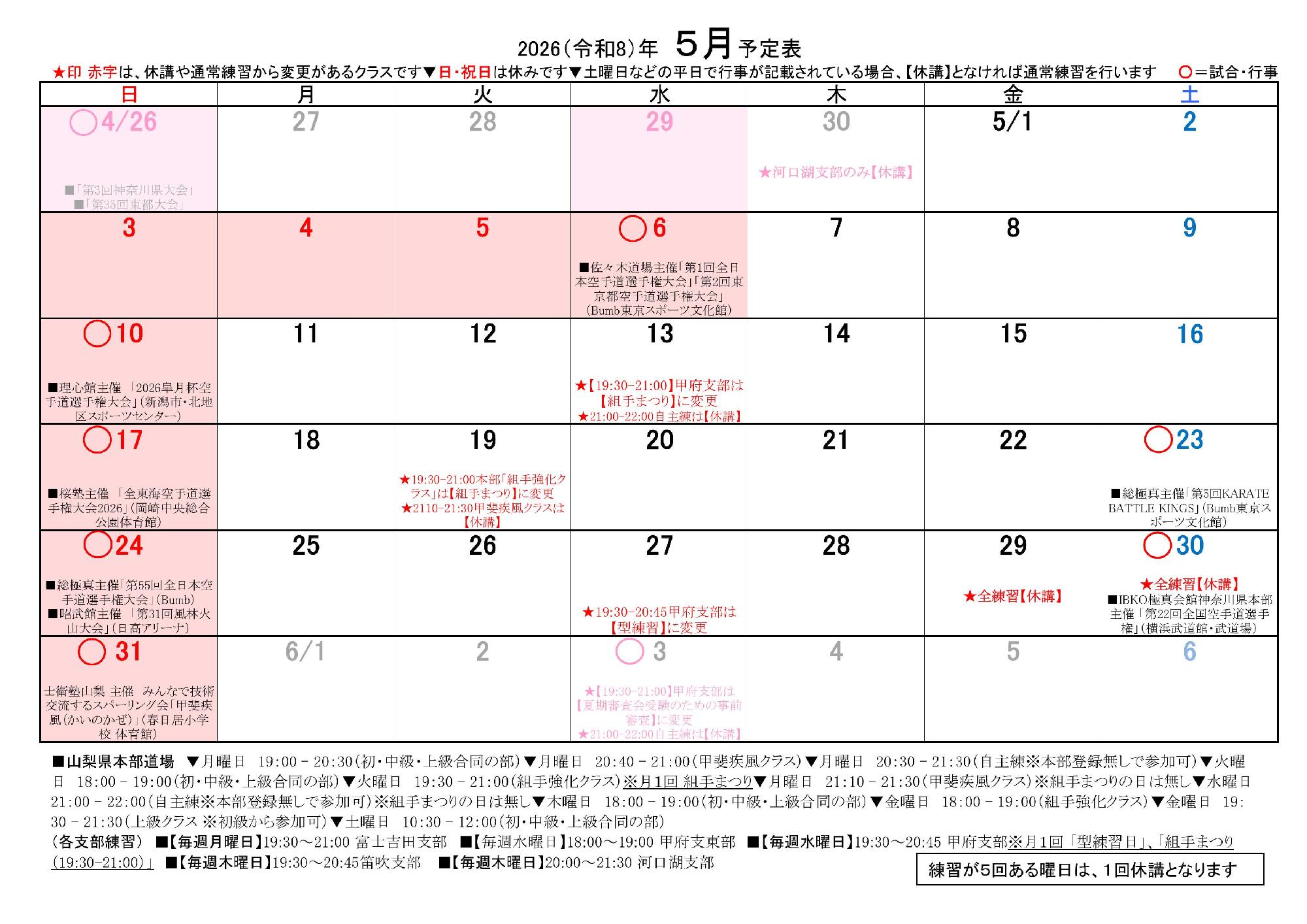 ▼ 5月27日 (水) 19:30-20:45 【型練習】(甲府上条中)※本部登録者以外でも参加可
