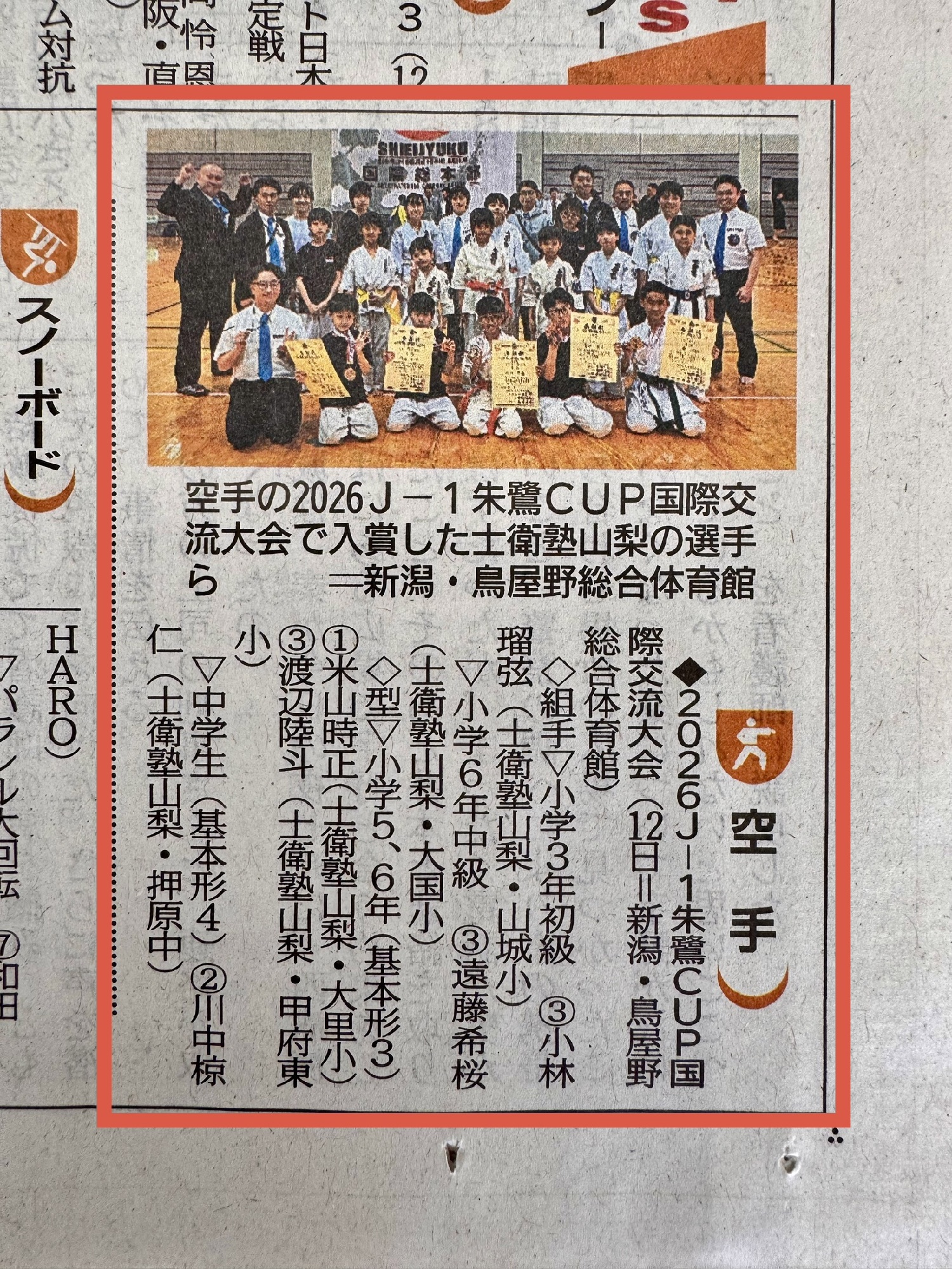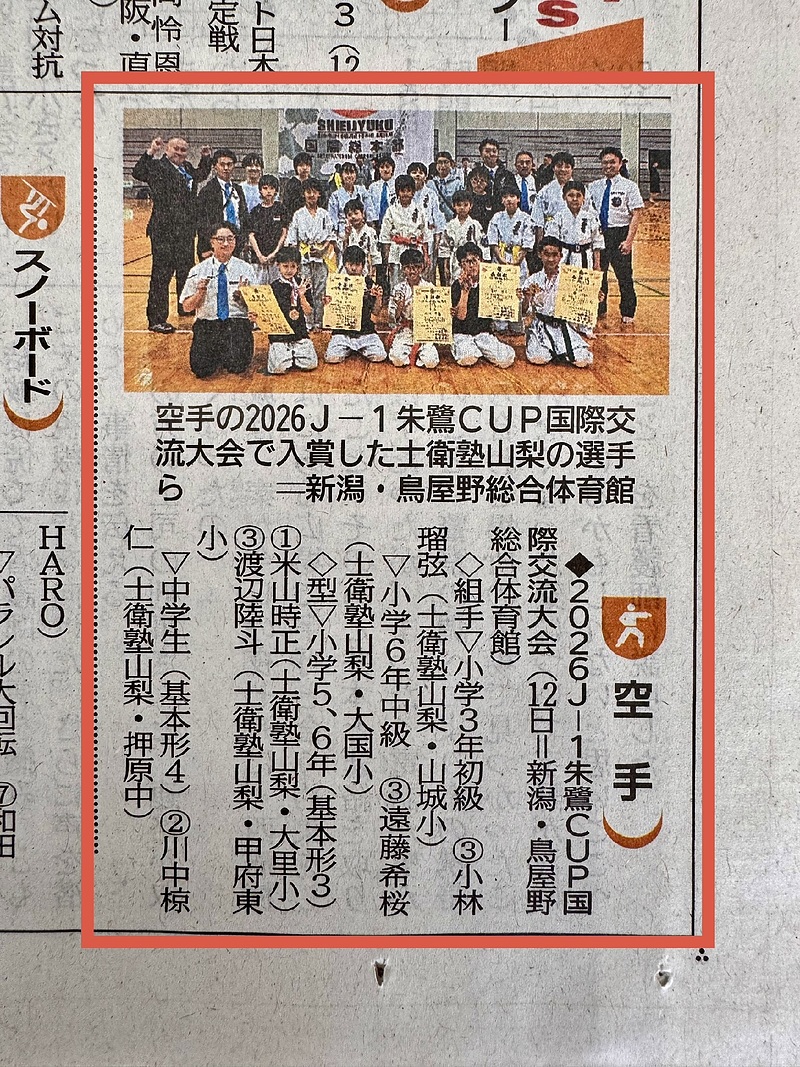 本日 4月21日(火)の山日新聞に、この間の大会の結果が掲載されました。