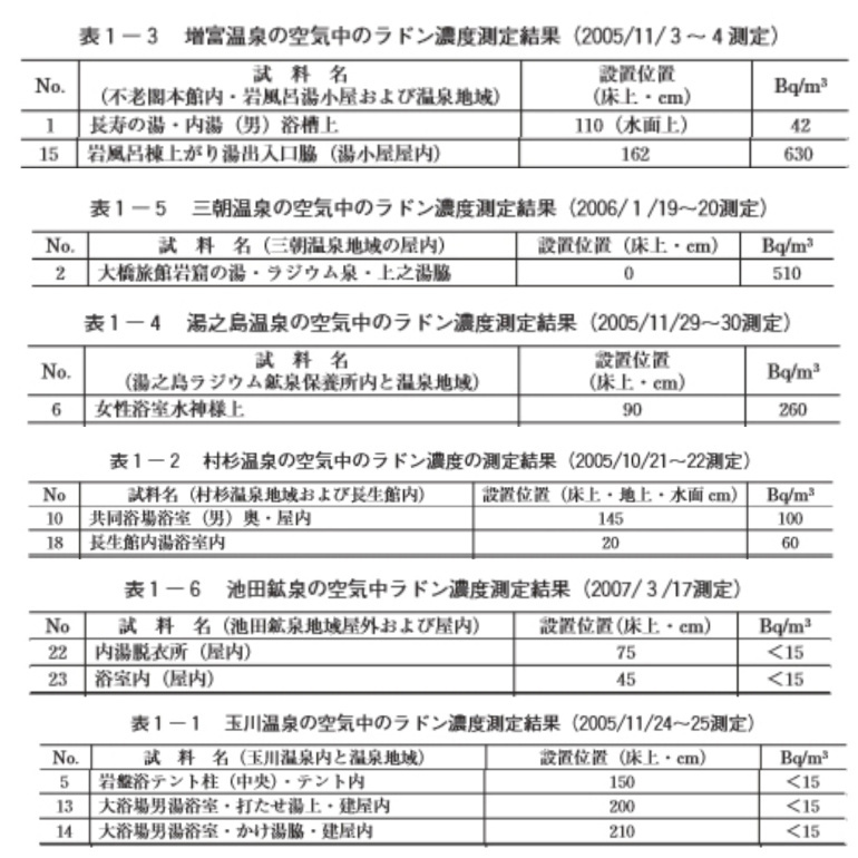 全国のラジウム温泉(放射能泉)にラドンが無いことが背景にある。